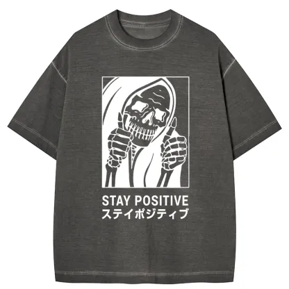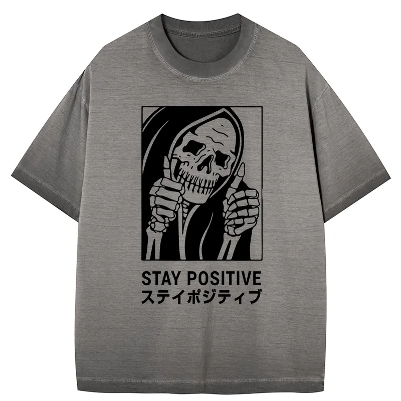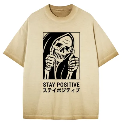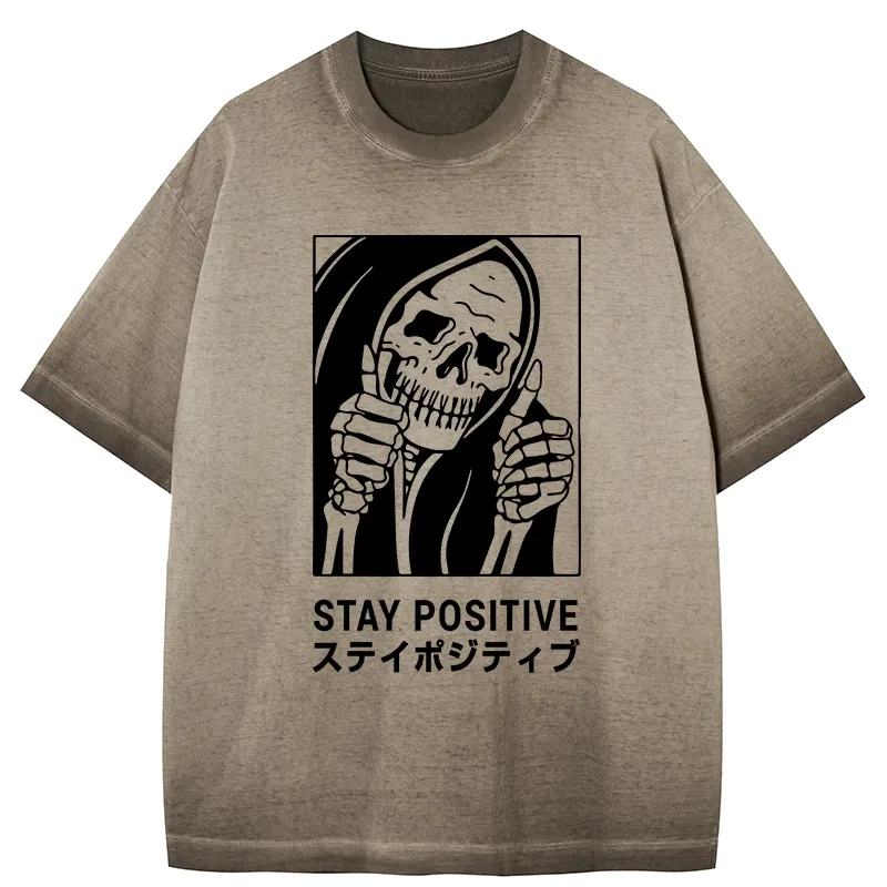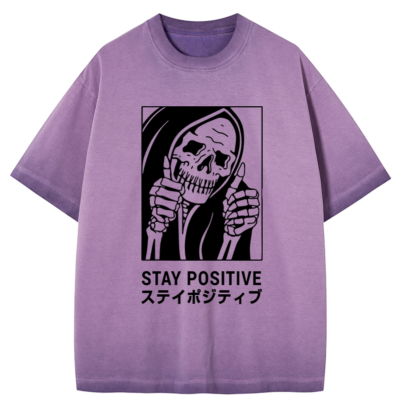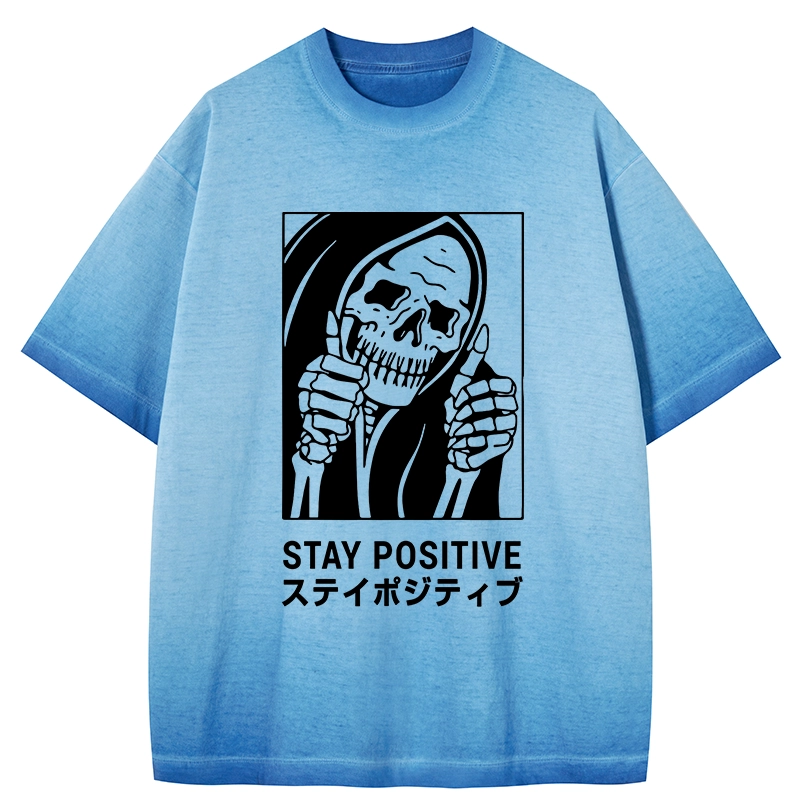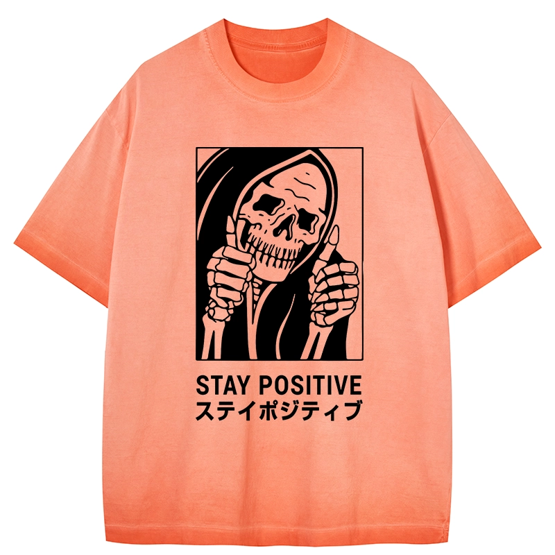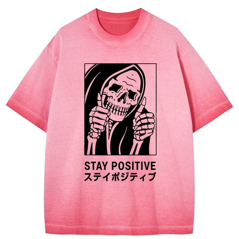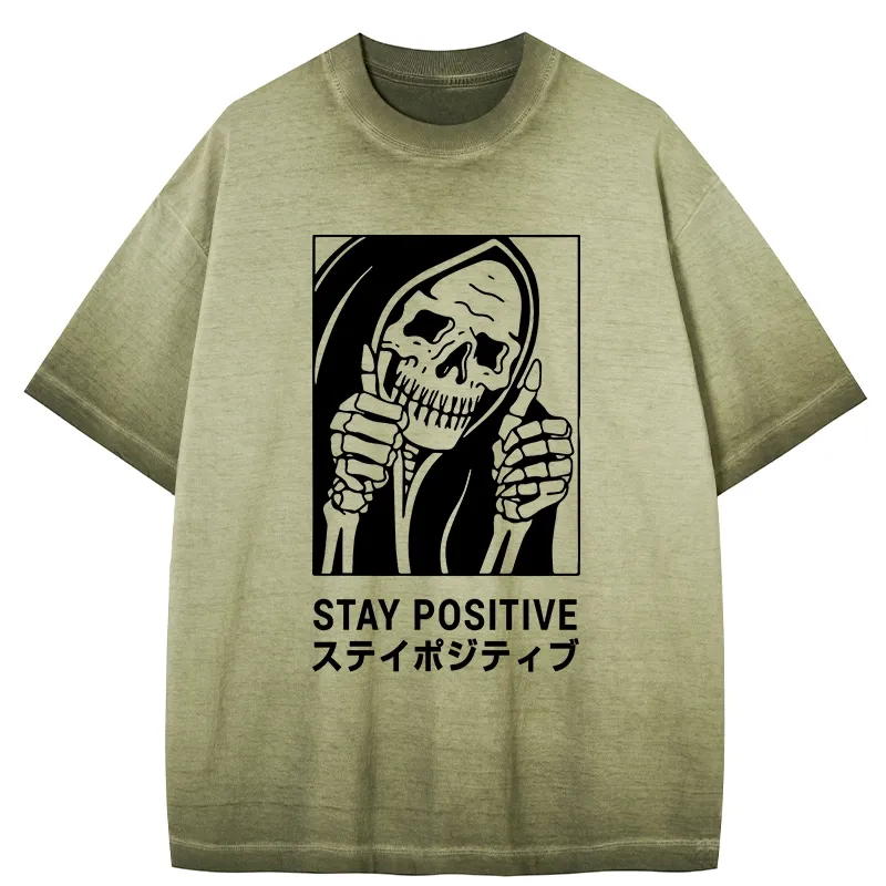 Tokyo-Assassin Stay Positive Skeleton Gradient Washed T-Shirt