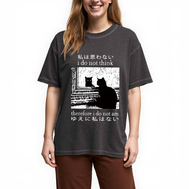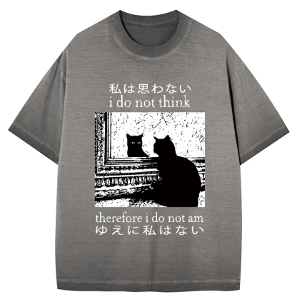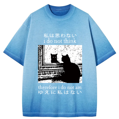 Tokyo-Assassin Thinking Cat Gradient Washed T-Shirt