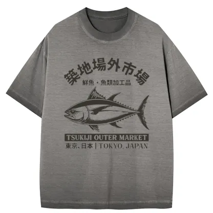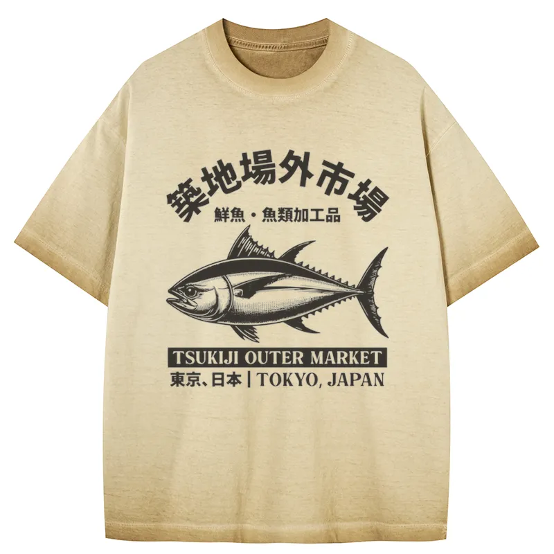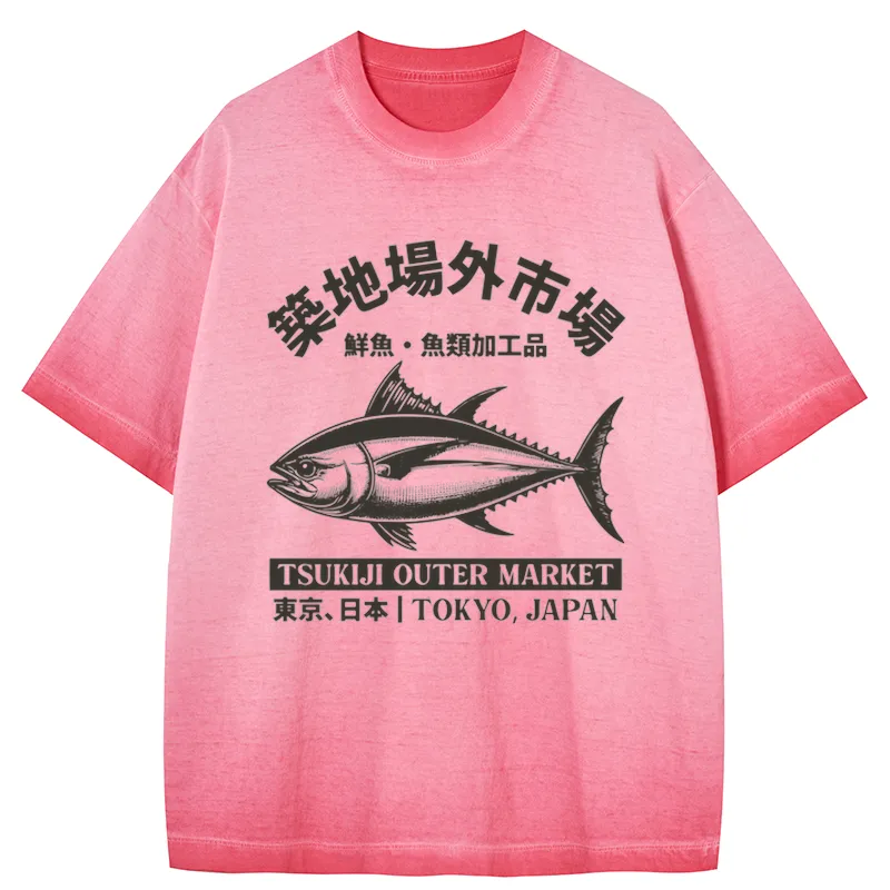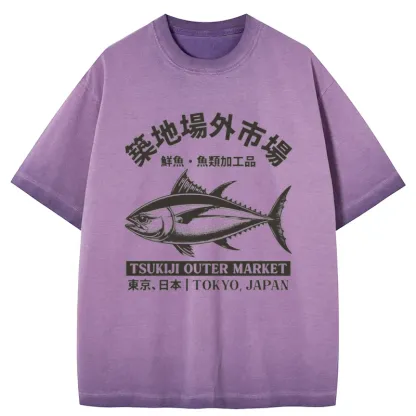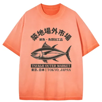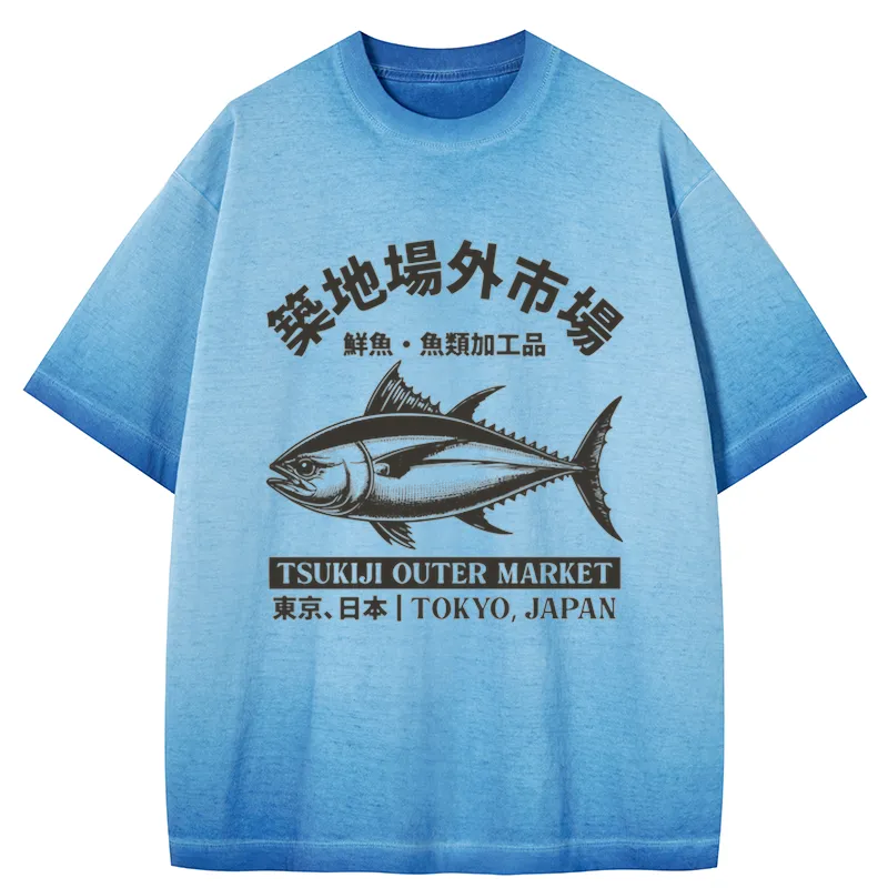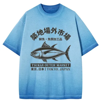 Tokyo-Assassin Tokyo Japan Tsukiji Fish Market Gradient Washed T-Shirt