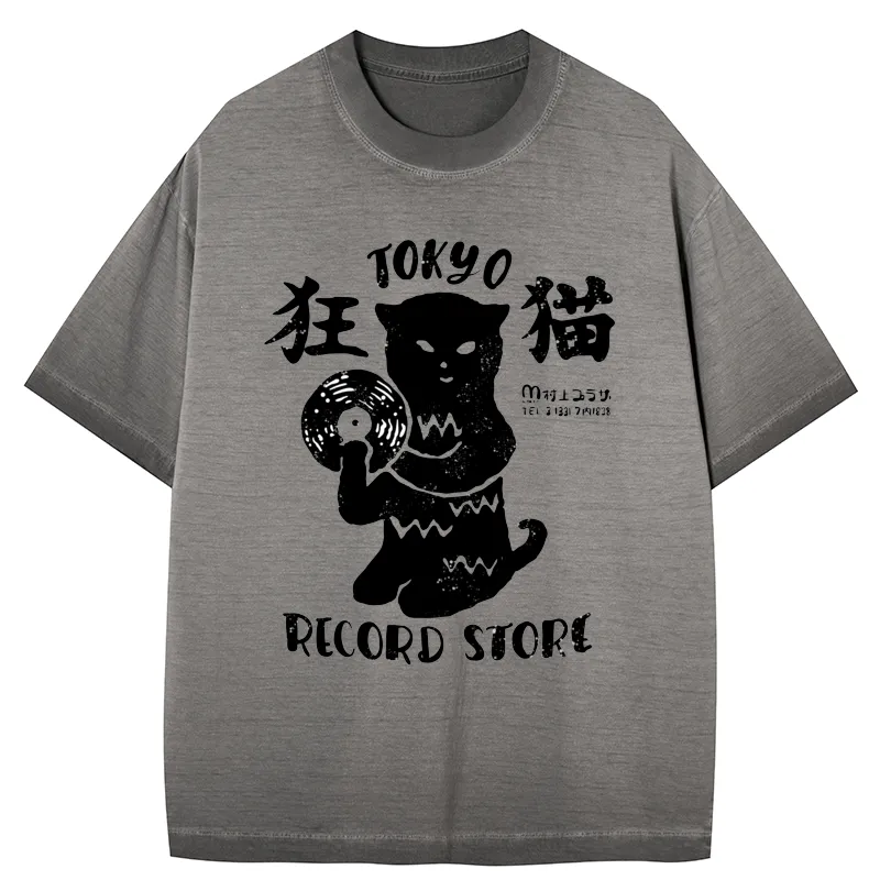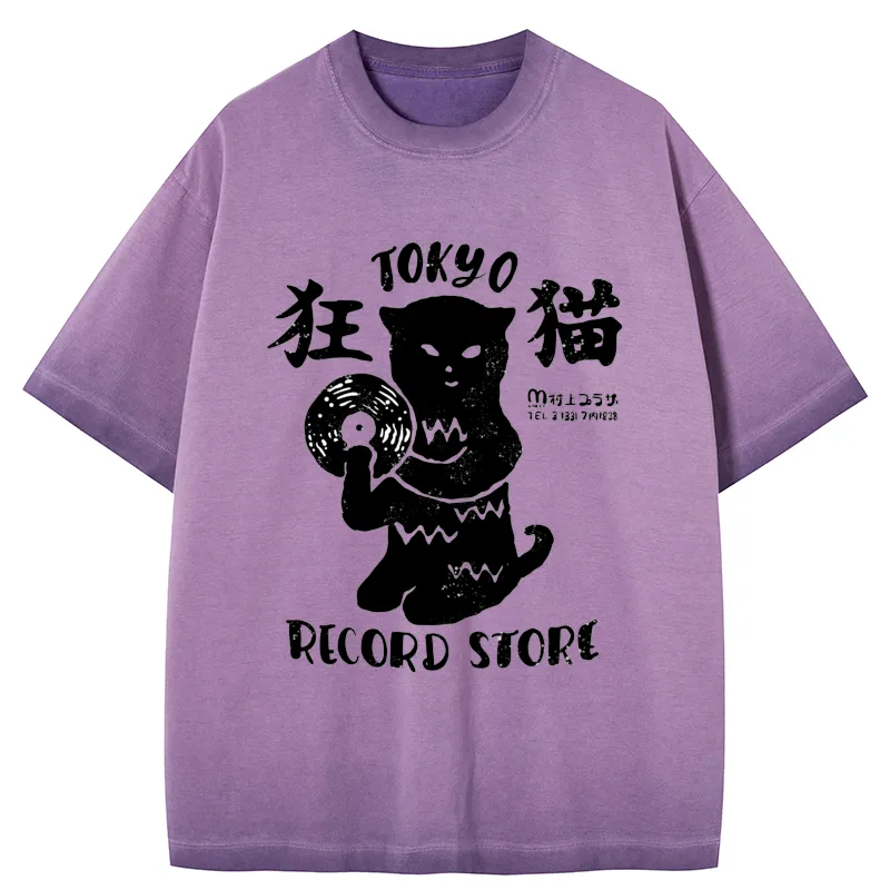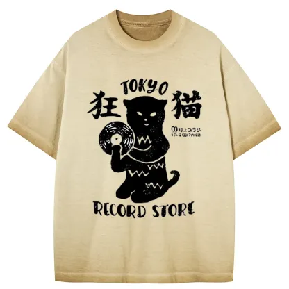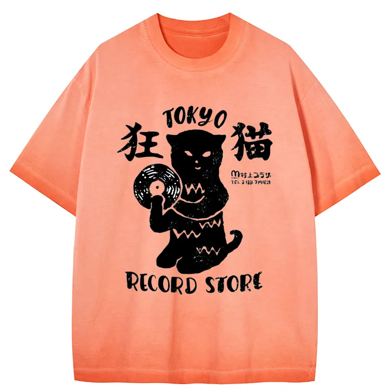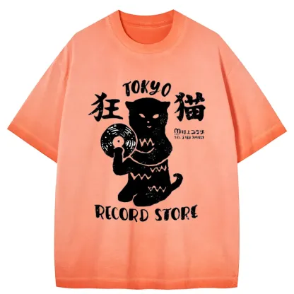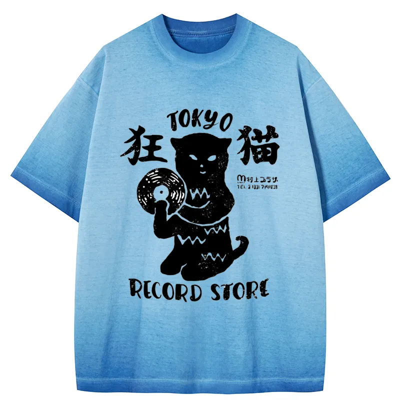 Tokyo-Assassin Tokyo Record Store Cat CD Gradient Washed T-Shirt