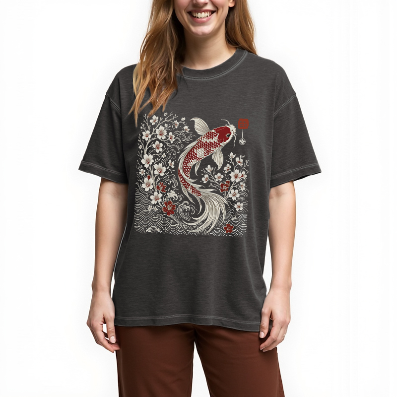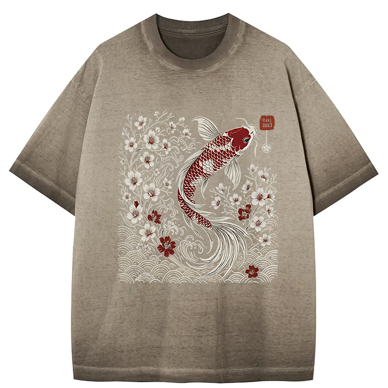 Tokyo-Assassin Vintage Sakura And Koi Gradient Washed T-Shirt