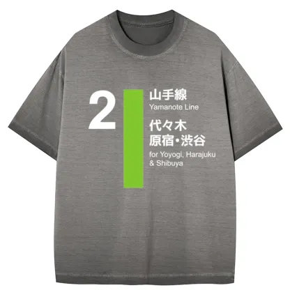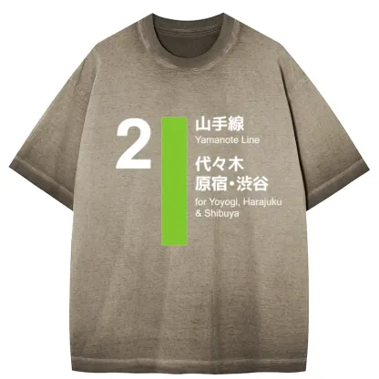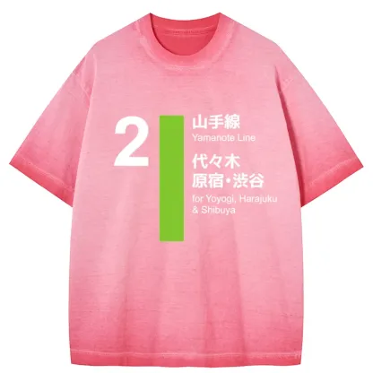 Tokyo-Assassin Yamanote Line Shibuya and Harajuku Gradient Washed T-Shirt
