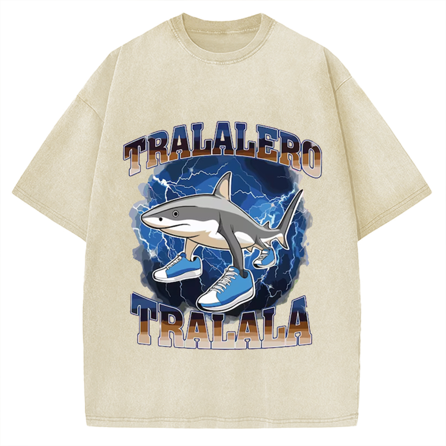 Tokyo-Assassin Tralalero Tralala Funny Shark Meme Vintage Washed T-shirt