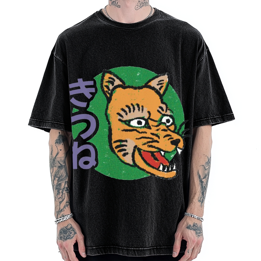 Tokyo-Assassin Ukiyo-e Style Fox Funny Painting Vintage Washed T-shirt