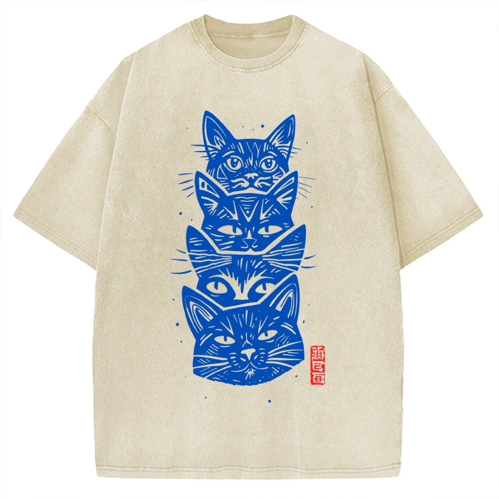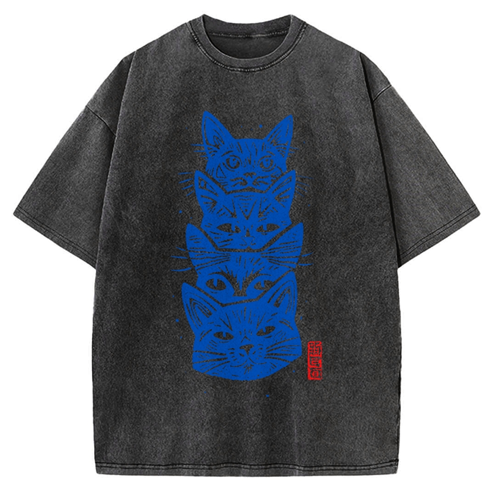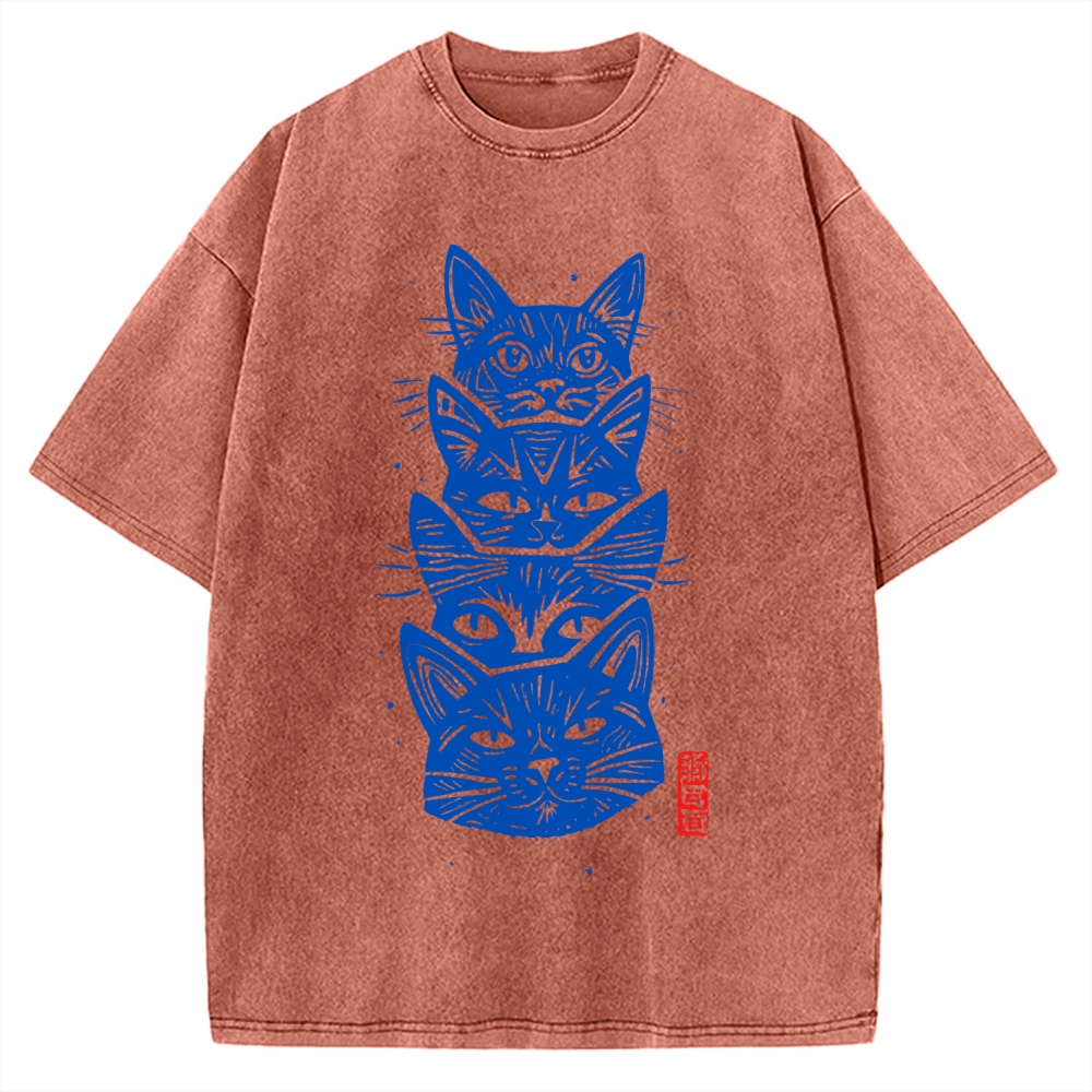 Tokyo-Assassin Vintage Cat Vintage Washed T-shirt