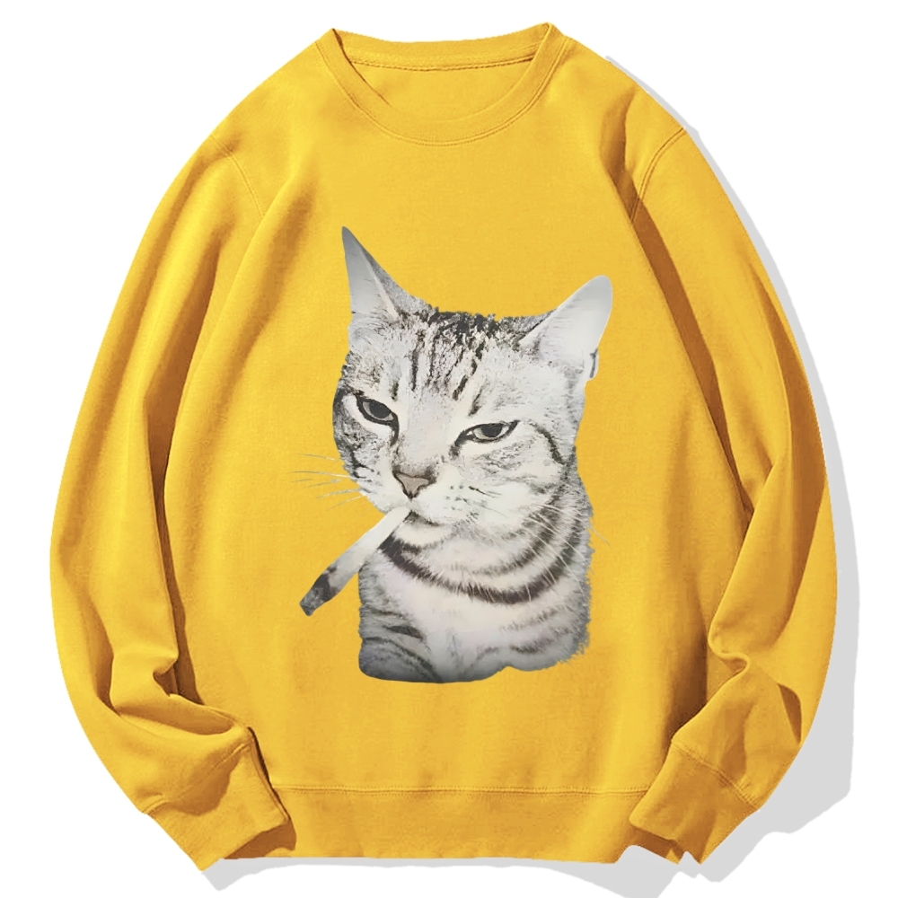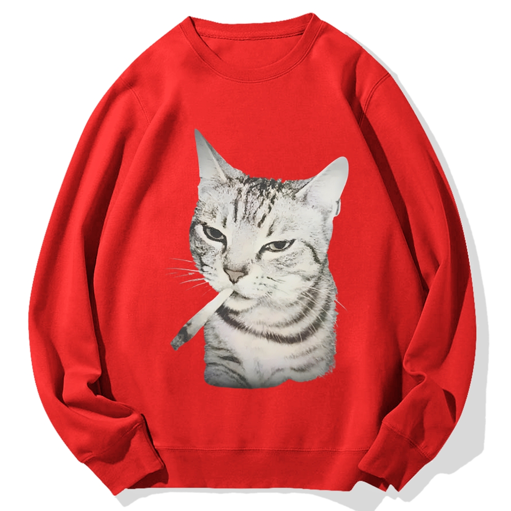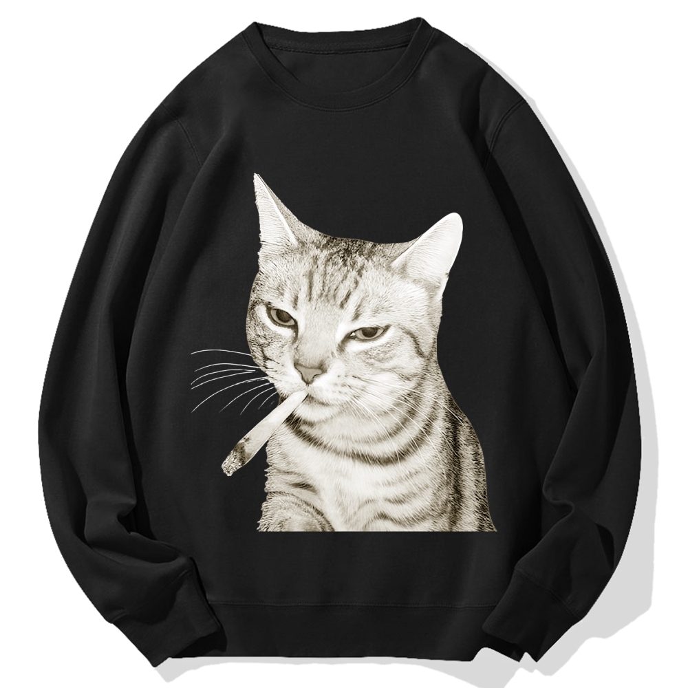 Tokyo-Assassin Vintage Smoking Cat Meme Cotton Sweatshirt