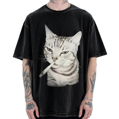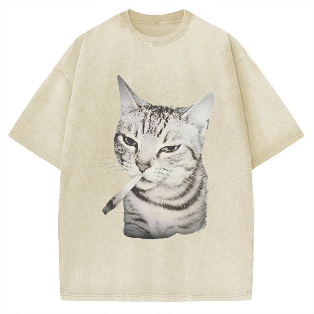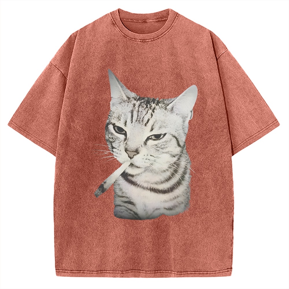 Tokyo-Assassin Vintage Smoking Cat Meme Vintage Washed T-shirt